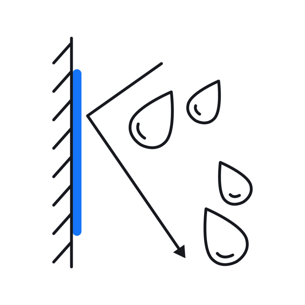 Hidrofobik etkisi, nemin dışarıdan içeriden penetrasyonunu önler, ancak iç nemin dışarıya çıkmasına izin verir.
